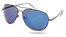 - Available in Gunmetal with a Blue reflective lens or Silver with a Grey Mirror lens.