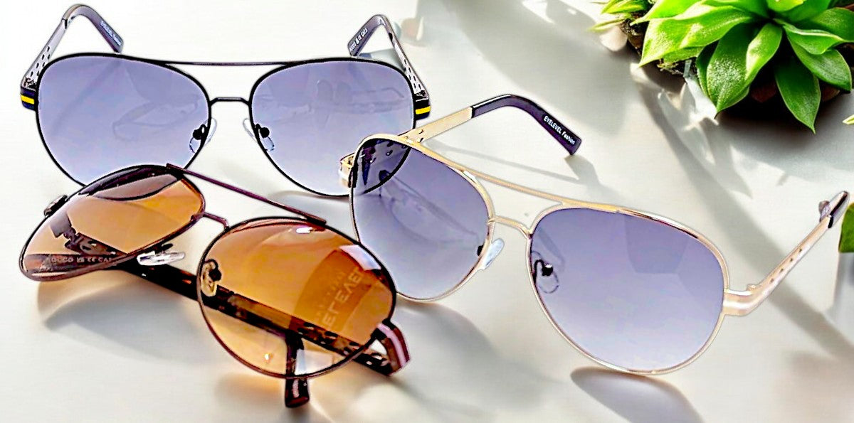 Fashion Sunglasses in a Pilot Style.EyeLevel - The UK's Largest Choice of Sunglasses and Readers.Established-1994 in Manchester-UKAll of EyeLevel's Premium Fashion Sunglasses have a U/V Filter Lens providing 100% UVA/UVB protection.